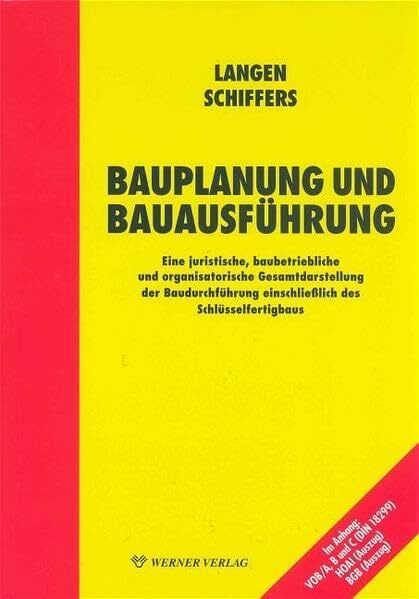 Das Buch "Bauplanung und Bauausführung" von Karl H. Schiffers ist eine umfassende Darstellung der Baudurchführung, einschließlich des SF-Baus. Es bietet einen tiefen Einblick in die juristischen, baubetrieblichen und organisatorischen Aspekte der Bauplanung und -ausführung. Das Buch behandelt verschiedene Themen wie Vertragsrecht, Bauverfahren, Kostenplanung, Qualitätskontrolle und Sicherheitsmanagement. Es enthält auch Abschnitte über spezialisierte Bereiche wie den SF-Bau. Dieses Werk dient als Leitfaden für Praktiker im Baugewerbe sowie Studierende in verwandten Disziplinen, die ein fundiertes Verständnis für die Komplexität und Vielfalt des Bauprozesses erlangen möchten.